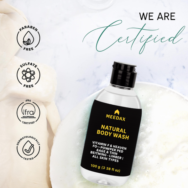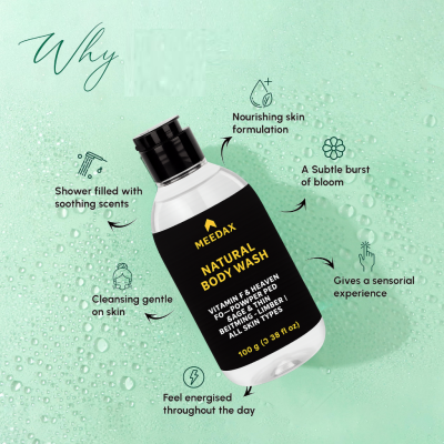 Meedax Natural Vitamin-E Bodywash with activated beads deeply cleanses, brightens, and nourishes the skin. Enriched with Vitamin-E, suspended foam base, and natural moisturizers for smooth, glowing, healthy skin. Suitable for all skin types and unisex use.