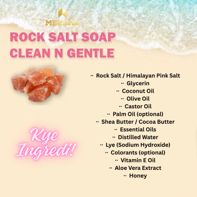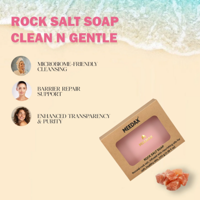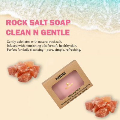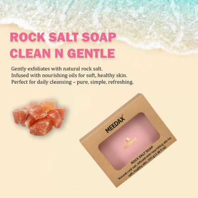 Experience naturally refreshed and healthier skin with the Meedax Rock Salt Soap Pack of 3. Formulated with pure natural rock salt and enriched with nourishing oils, this bathing bar deeply cleanses while maintaining skin moisture. The mineral-rich composition helps remove impurities, dead skin cells, and excess oil, leaving your skin soft, smooth, and naturally glowing. Perfect for everyday use, this soap works effectively for both men and women and suits all skin types. Enjoy a luxurious and refreshing bath experience with the gentle exfoliation and skin-boosting benefits of rock salt.